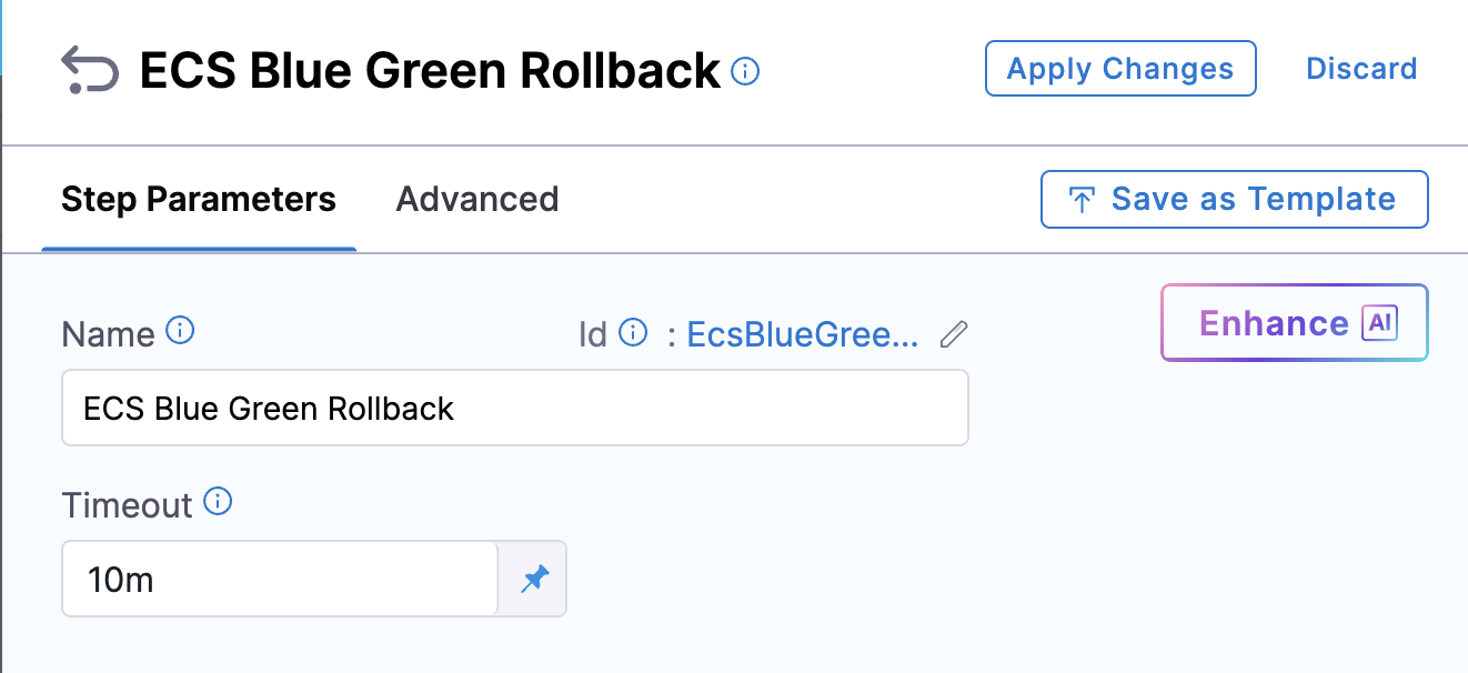 In Inherit mode, if the step fails mid-execution, the rollback is handled by the ECS Blue Green Rollback step, which restores the traffic weights and blue/green tag assignments using the stored rollback data.