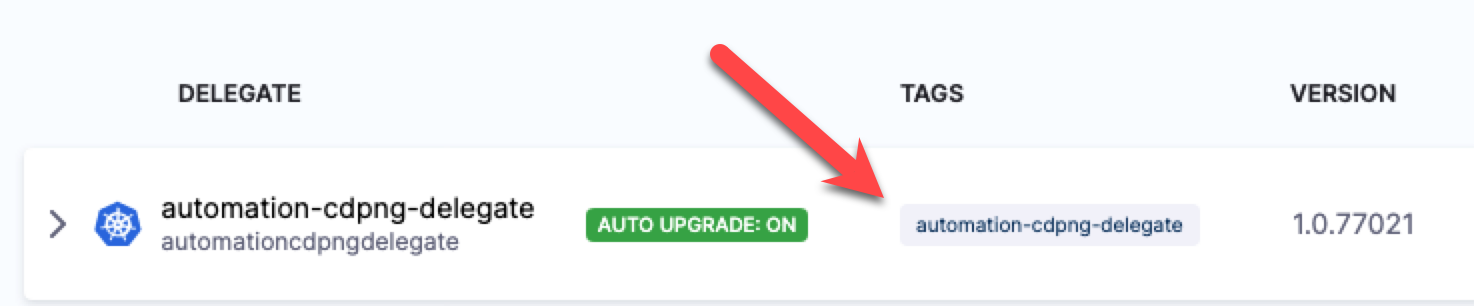 1. Note the default tag added to the Delegate. You will use this to select this Delegate in future steps.
