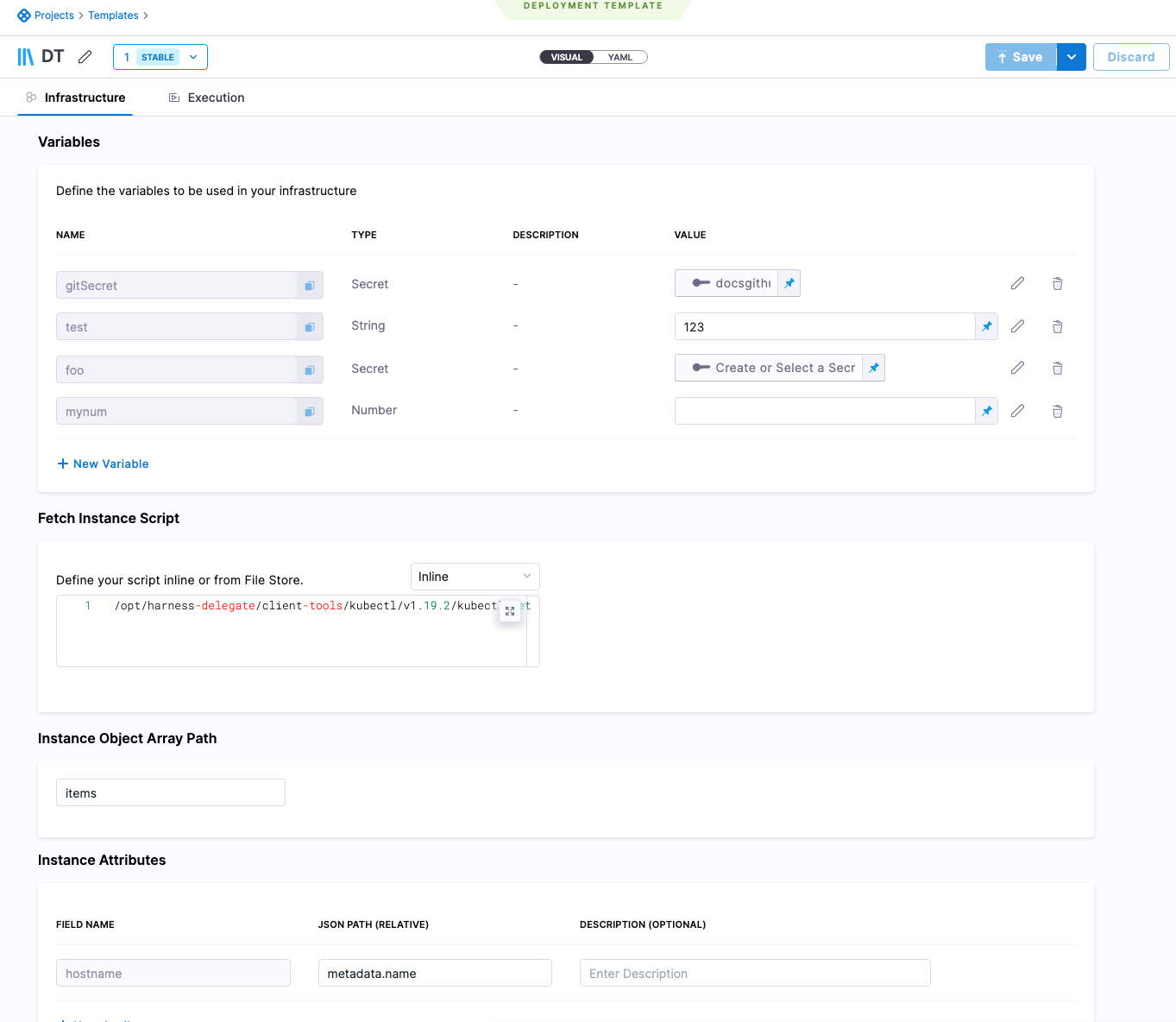 2. In your Harness Pipeline stage Environment, create a Harness Infrastructure Definition that uses the Deployment Template.