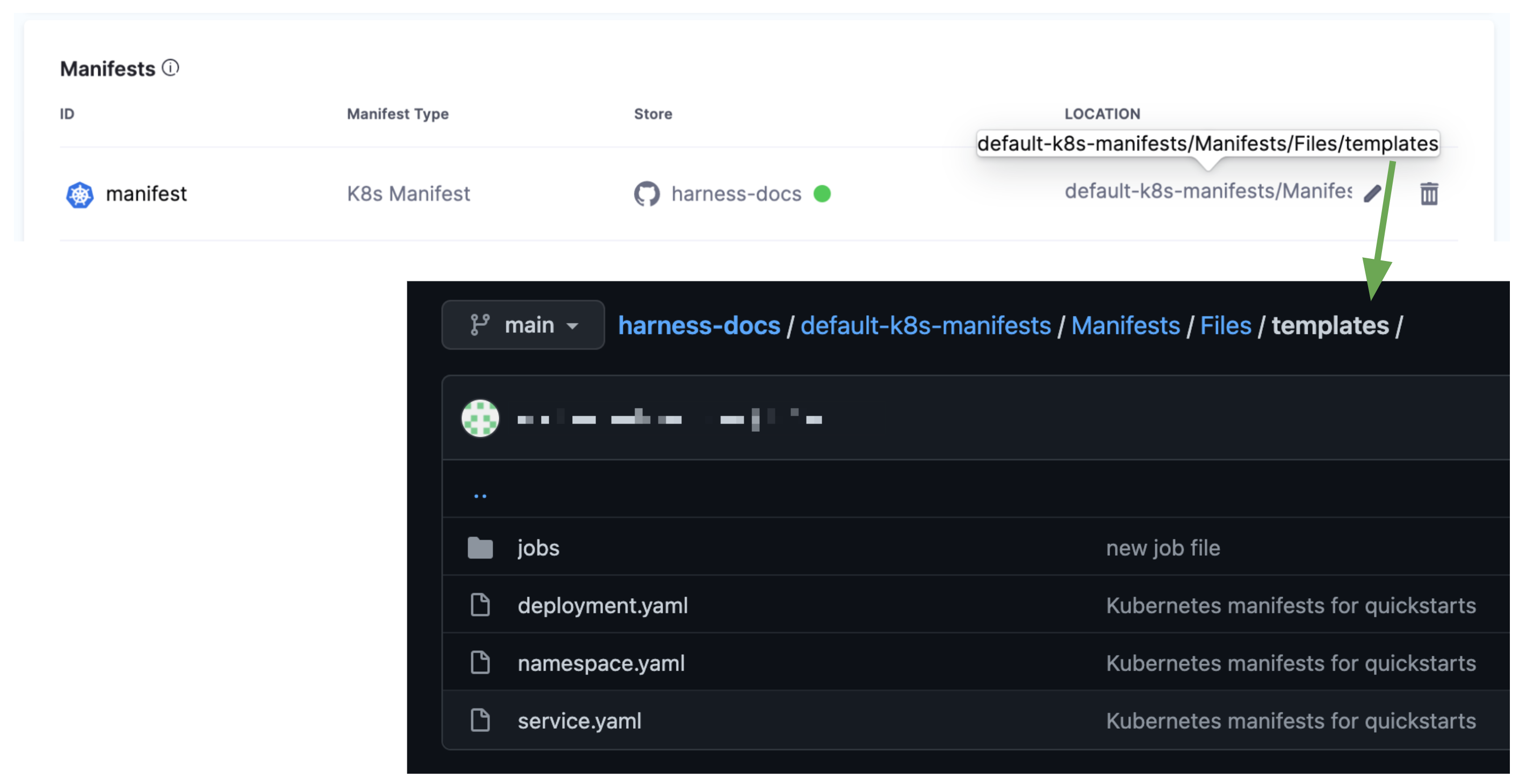For example, the path in Manifests is default-k8s-manifests/Manifests/Files/templates and the Job manifest is in the subfolder of templates named jobs/job.yaml.
