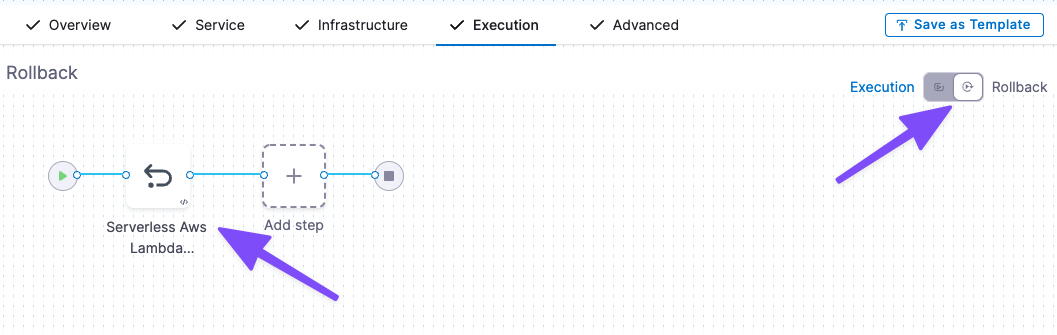 While this is somewhat similar to how rollback is performed in Serverless CLI, Harness performs rollback automatically and always uses the timestamp of the last successful deployment.
