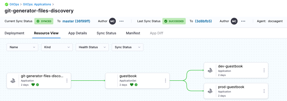 After the application with multiple source is created, you can also choose which source to sync with the application during the sync operation. By default, all applications will be synced.