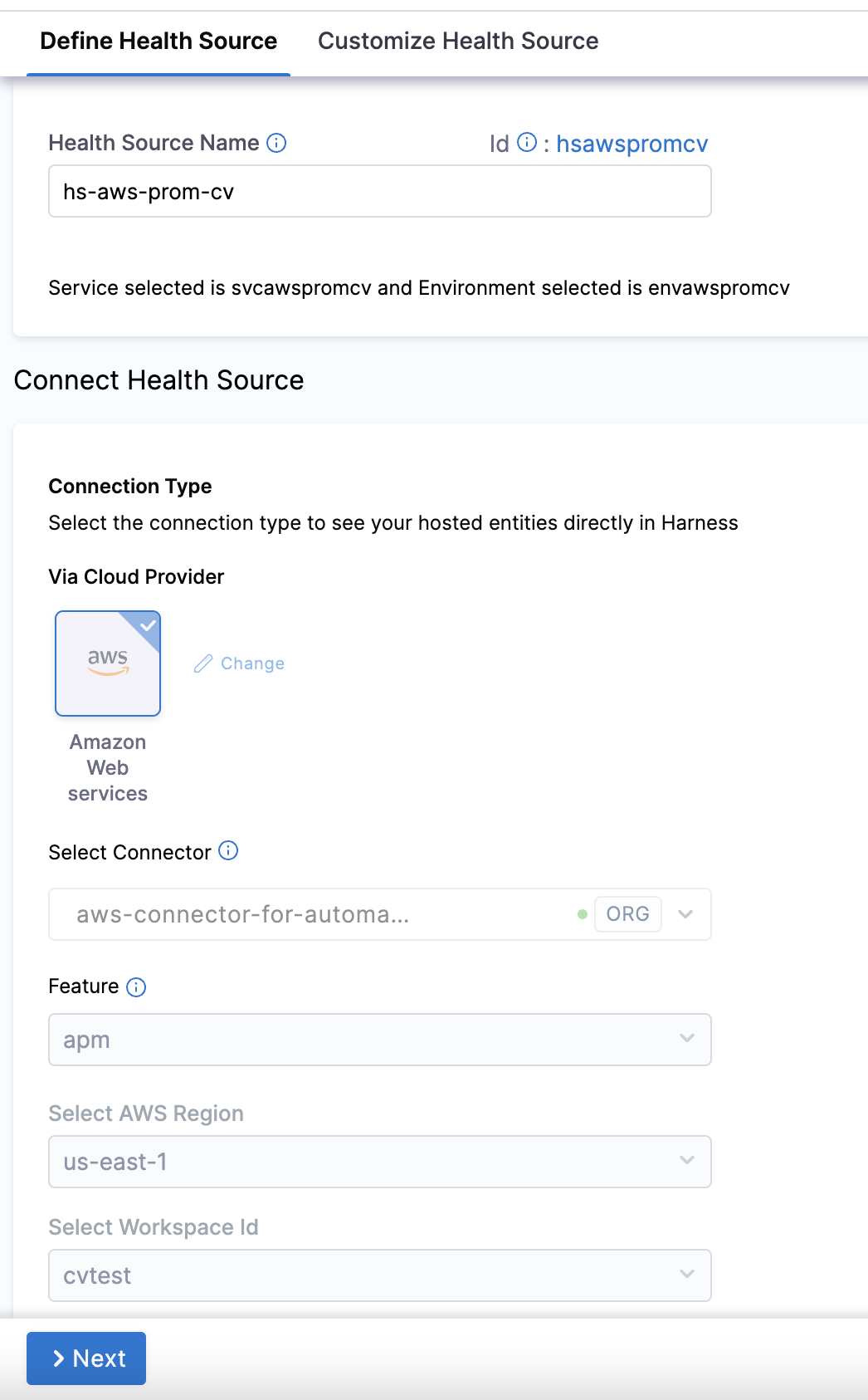 Harness now supports Amazon Managed Service for Prometheus as health source. To select Amazon Managed Service for Prometheus as health source:
