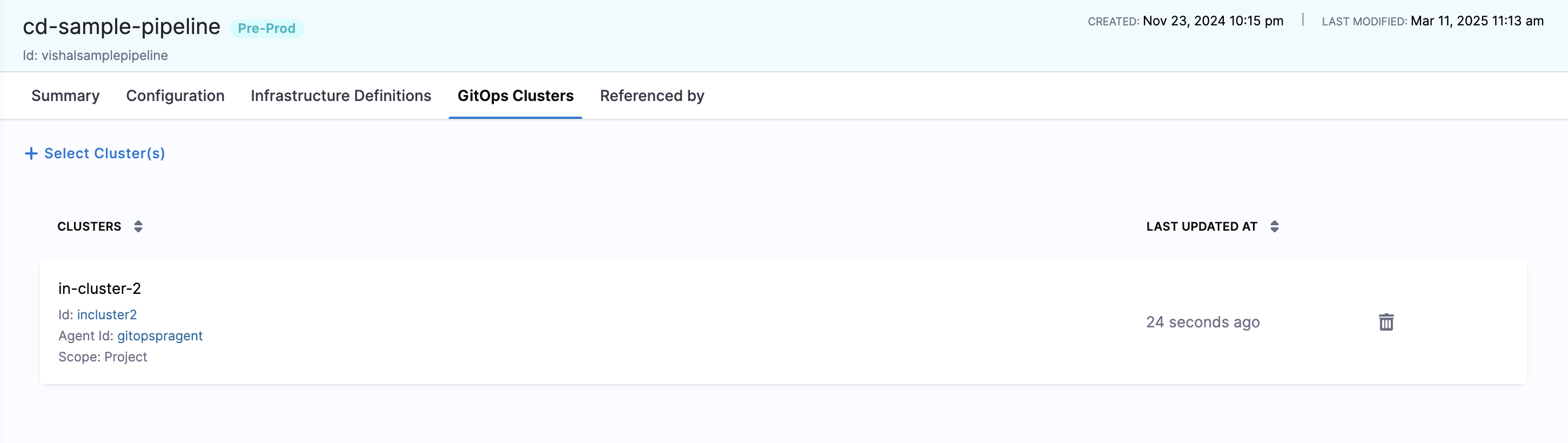 - Referenced by: displays the list of pipelines using the infrastructure definitions in the environment.