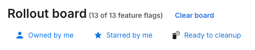 The Rollout board provides a place for teams to visualize where different features are in the release process and start answering questions like what features are ready for clean up or are ready to be ramped to more customers.