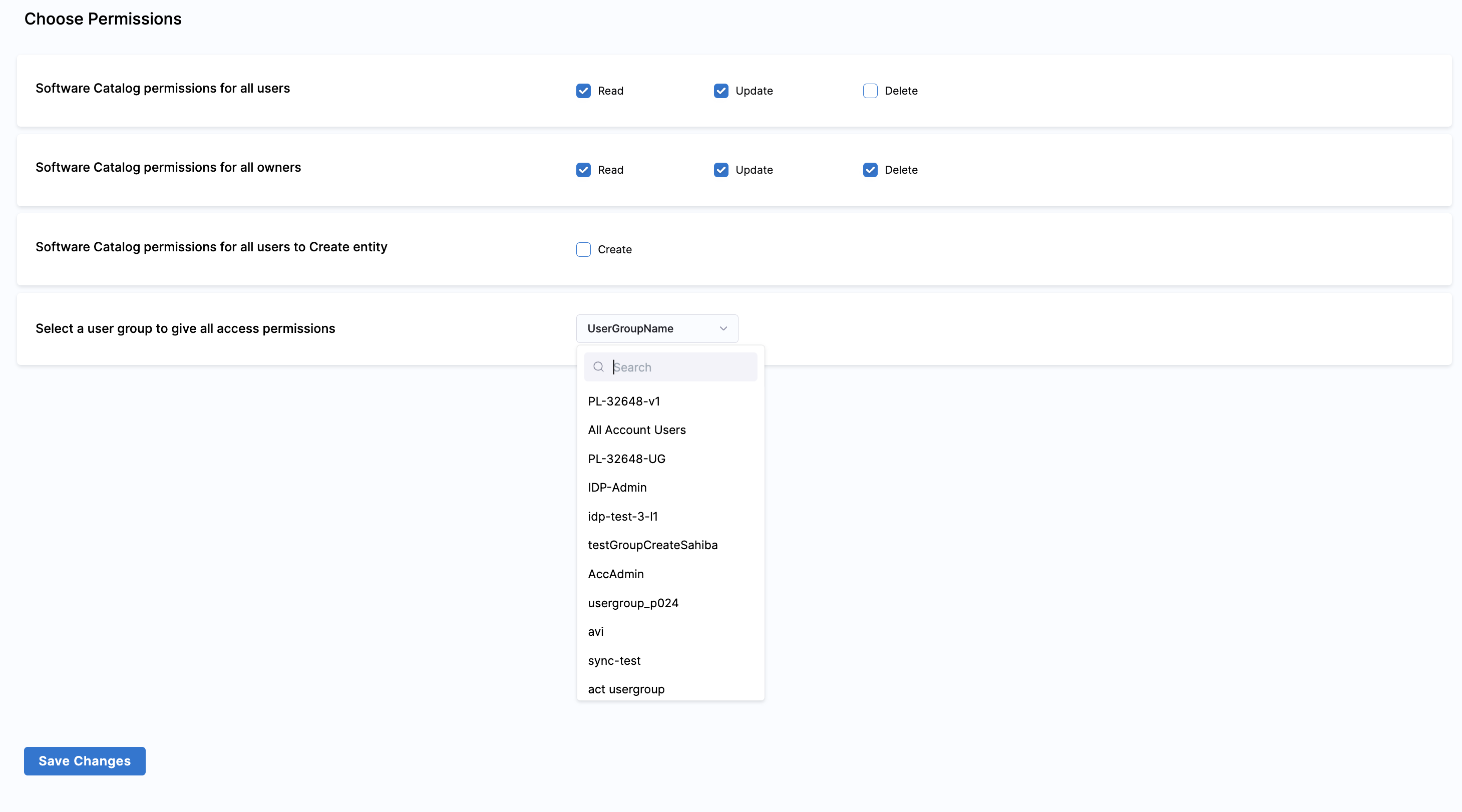 All user groups and users are also registered as Catalog entities, and can be viewed within the Catalog.
