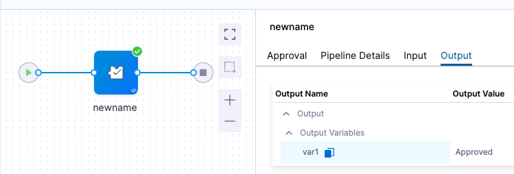 echo "output var: "<+steps.custapprove.output.outputVariables.var1>