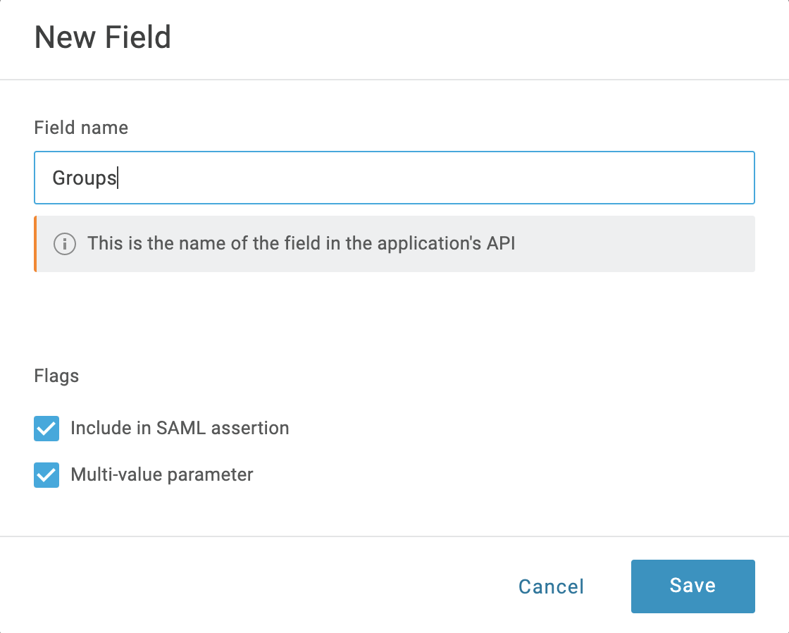 When you create a new SAML integration or modify an existing one, you can define custom attribute statements. These statements are inserted into the SAML assertions shared with your app. For more information, go to the Okta documentation on Defining Attribute Statements.