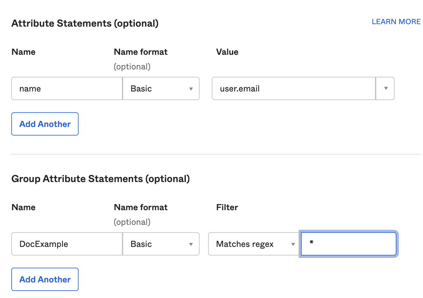 If you provision users and groups via SCIM API, use the following settings for your SAML integration.