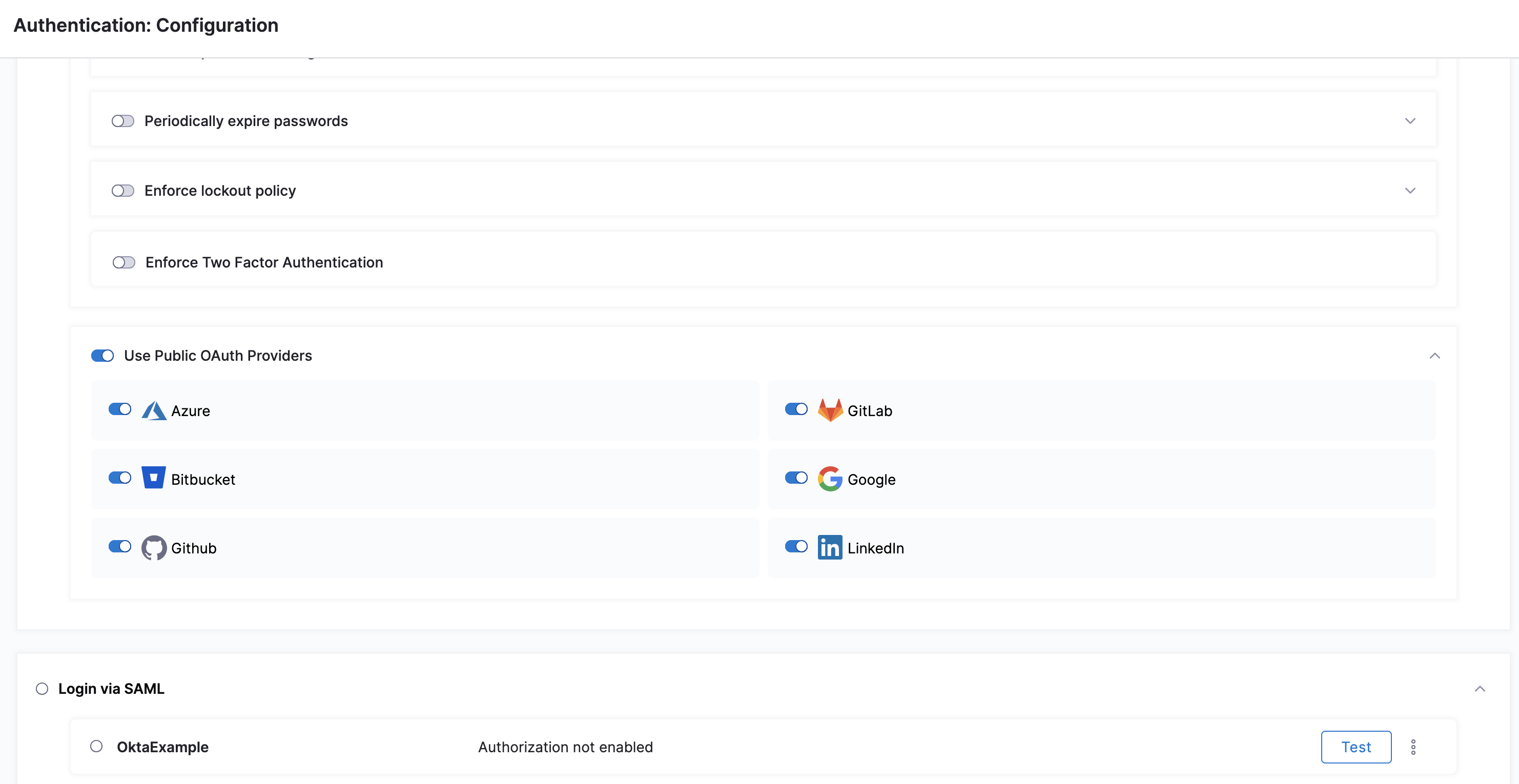 6. Select Add. Your Okta configuration appears under Login via SAML.