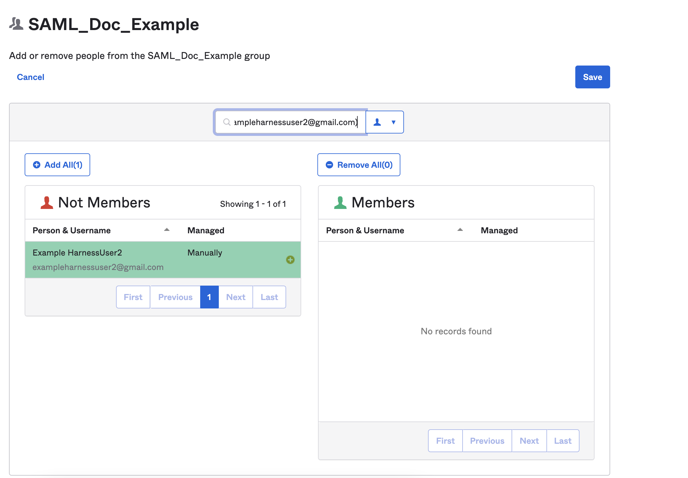 To set up a SAML support in your Okta Harness app, ensure that the app has corresponding Users in Harness: