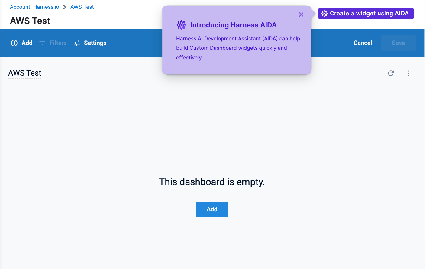 You first create your dashboard, and then you ask Harness AI to set up your widget.
