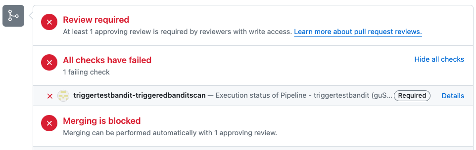 2. Now, merging is blocked if the Harness pipeline fails.