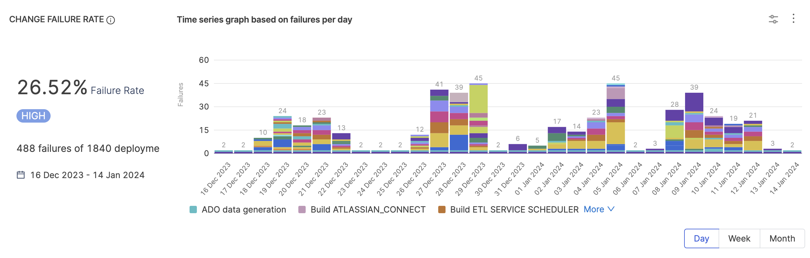 To monitor Change Failure Rate in SEI, you must set up a Workflow profile, and then add the Change Failure Rate widget to Insights.