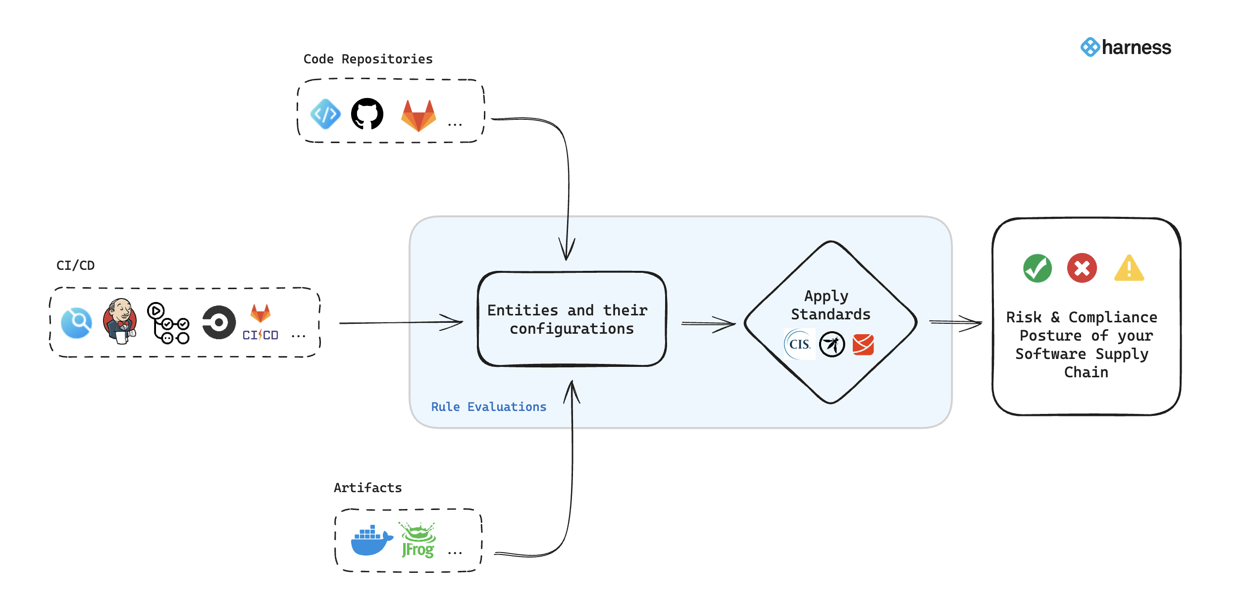 Currently Harness supports Code Repositories, and CI/CD. Please refer to the Use SCS section in the onboarding document to see the full list of supported integrations for each feature. In the near future, Harness will add support for other target types and integrations.